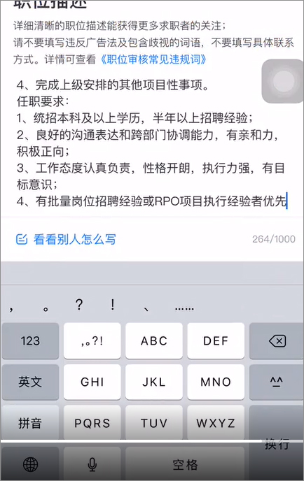 4、填写职位信息时,可以点击【看看别人怎么写】