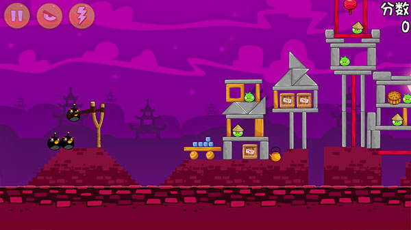 4、进入游戏后你需要通过愤怒的小鸟来打捣蛋猪击倒;