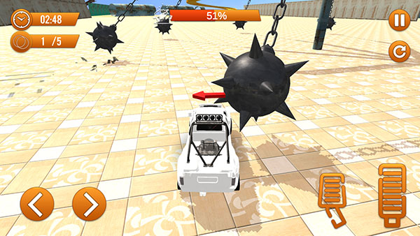 游戏里还能无限更换车辆、颜色和轮胎,这肯定会让很多玩家喜欢。玩法上有很多碰撞和特技的元素,像是用大摆锤或者旋转压机来撞车,听起来刺激又好玩。特别是氮气加速的功能,感觉会让比赛更激烈,考验驾驶技术和反应能力。
