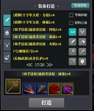 收集材料可以打造装备和背包,大家在选择打造装备前也可以点击右上角装备图鉴查询对应装备的属性和词缀。