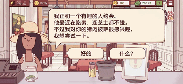 【成就:牵线搭桥】就是上面图的女孩来点披萨说她正在约会 就是图中的披萨 做成后就会解锁成就牵线搭桥啦
