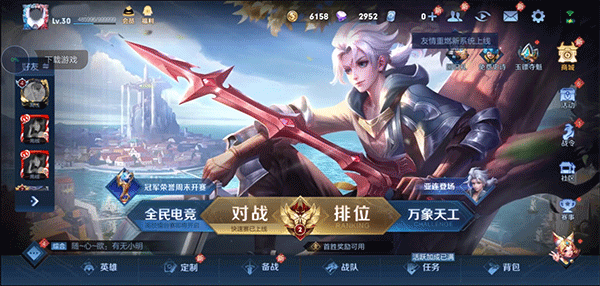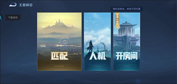 2、进入后,在游戏首界面中选择你喜欢的游戏模式,分别为对战模式和排位模式,其中对战模式拥有5v5,3v3,1v1和训练赛,排位赛为5v5模式
