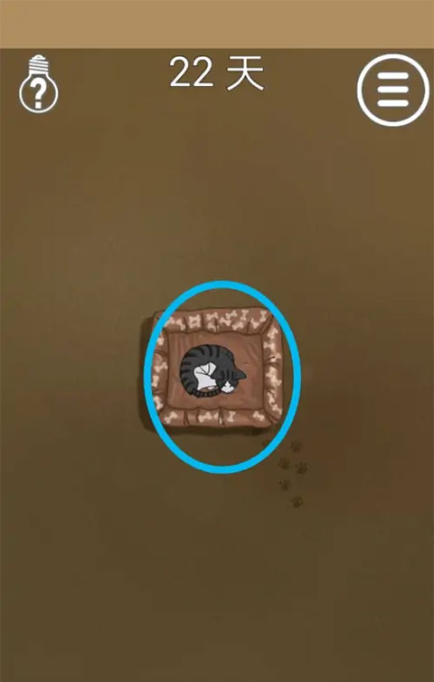 1、在本站下载安装该游戏的最新版本,打开进入第22关,可以看到猫咪在睡觉。