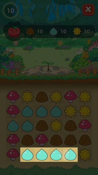2、育苗的过程中少不了土壤、水分、光照和肥料,不同的树苗对养分的需求也不同。同时只需连线消除即可收集水分。