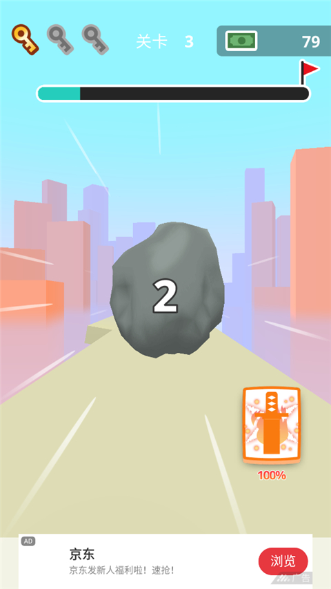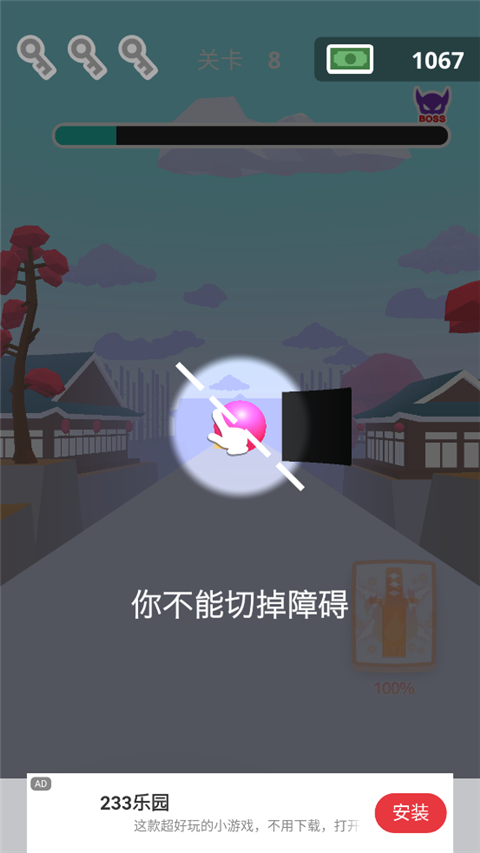 8、碰到这种带数字的障碍物,玩家需要切两次才能将障碍物切碎;