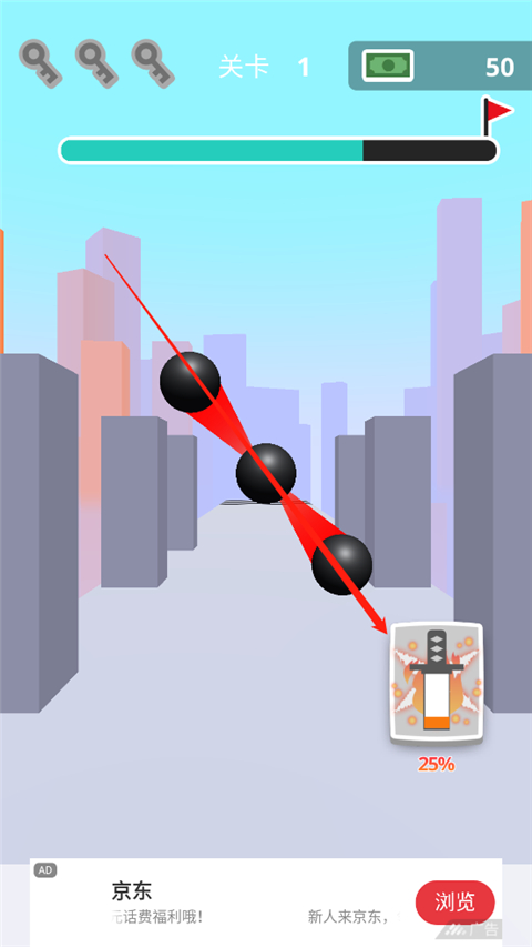 10、碰到小球周围有黑色屏障的话,玩家需要仔细观察,在不切到障碍的前提下切掉小球。