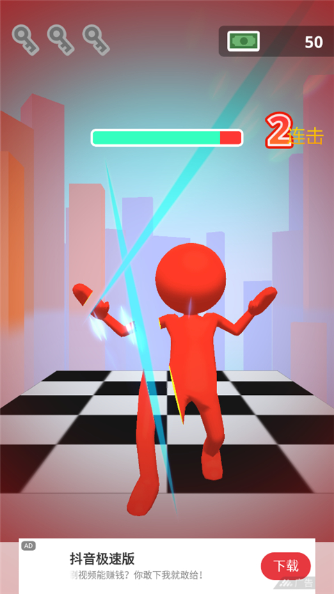 武士切切切是一款非常有趣好玩的休闲闯关游戏,采用小清新的的画风,简洁的橡皮人角色,简单的玩法以及刺激的背景音乐,给玩家带来了非常独特的切切切体验。在游戏中,玩家将化身为一名武士,拿着武士刀不停的奔跑,将途中所有种障碍与敌人远不切掉,飞石、炸弹、袖剑等,玩家只需用手指滑动,即可成功切碎。