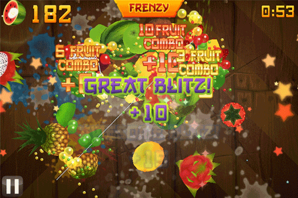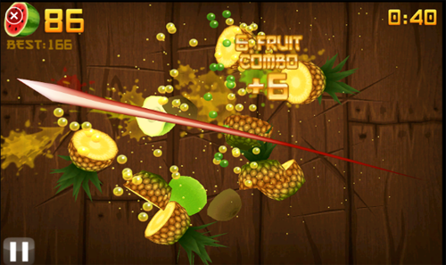 1、刀法想要combo到水果,并不一定要死脑筋等到几个水果在同一直线时再切,即使你的刀有一定弧度,只要不是