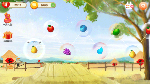 3、丰收的季节,水果蔬菜全副武装,搭配美妙的音乐,节奏轻快,全新神秘的关卡,让您进入最潮流席卷中…