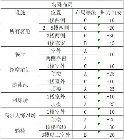 豪华大游轮物语中,相邻的设施、店铺之间都具有契合度。如果搭配得当,就能达到增加游客满意度的目标,从而赚取更多金币。同样,如果搭配失误,说不定还会降低游客的关顾频率哟。下面小编就为大家整理了《豪华大游轮物语》中设施、店铺间契合度辞典以及提升店铺魅力的特殊位置。