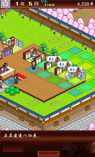 3、努力经营温泉馆,招揽更多的生意,从而获取更多的收益!这样你才能升级成更高级的旅馆,采取各种方式来吸引客人,让你旅馆人气更旺旺!!