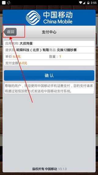 3、这时你会发现游戏界面会发生跳转,进入一个如下图所示的支付界面,请玩家不要支付,直接点击左上方的“返回”。
