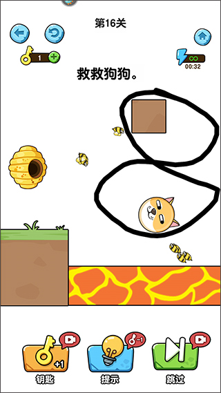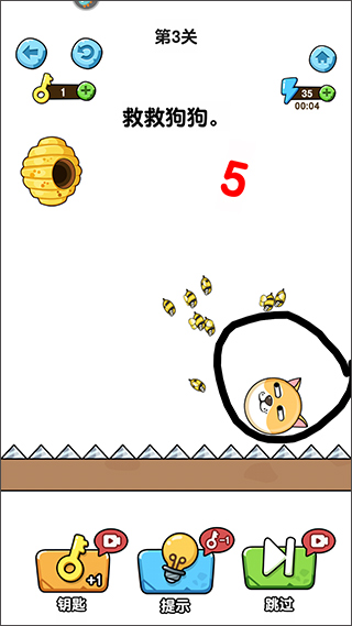 2、滑动屏幕来为狗子画一条线,蜜蜂是无法穿过这条线的。