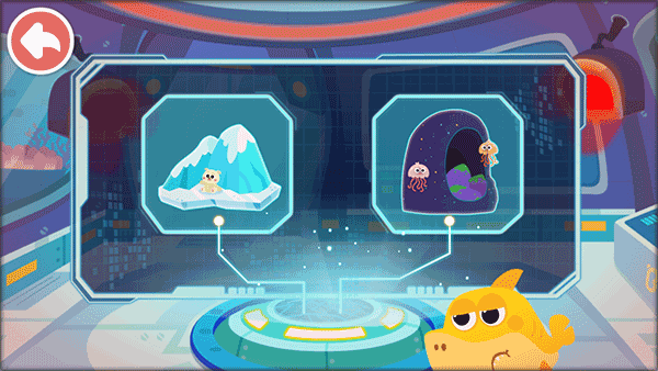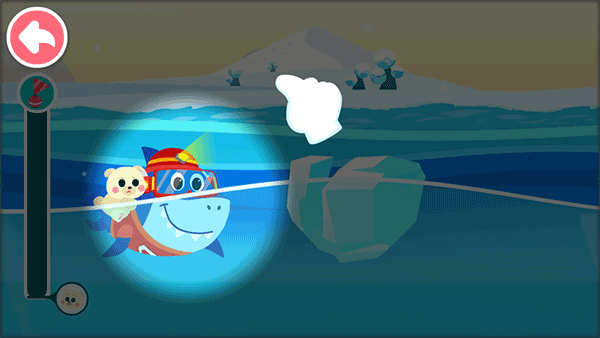 小北极熊在浮冰上,即将体力不支!宝宝注意,鲨鱼爸爸需要你为它指引方向:向上起跳,就能跨越浮冰;前方有海豹?向下潜水,轻松进行躲避。救援成功,小北极熊和家人团聚啦!