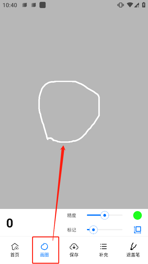 在识别界面中,点击“画圈”在图片中截取目标物品计数范围