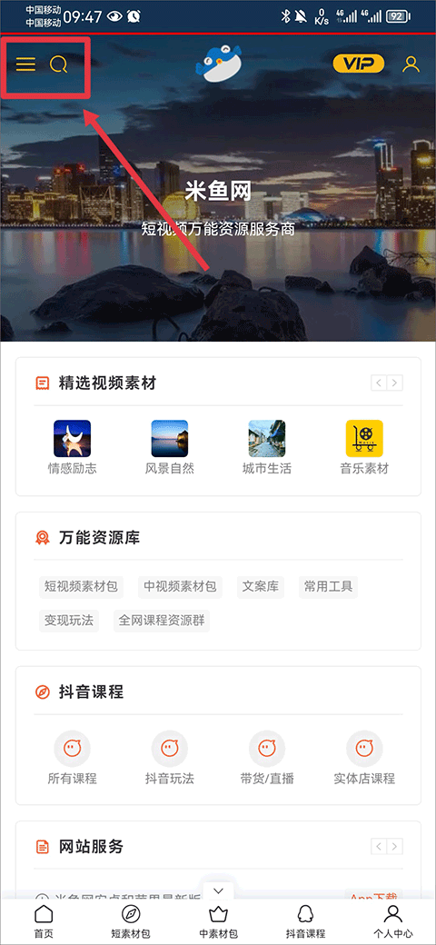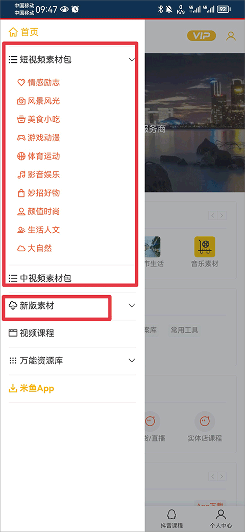 不仅如此,米鱼网app中除了提供视频素材,还有视频课程和万能资源库可供大家使用哦,视频课程中拥有实体店课程、小店/投放课程、带货/直播课程、抖音玩法课程,可以快速帮助用户掌握玩法技巧。而万能资源库中为用户提供了文案库和工具软件,既可以让你在没有灵感时获得新的文案,还能让你使用各种视频处理工具把视频做到最完美,简直是你创作短视频不可缺少的工具。