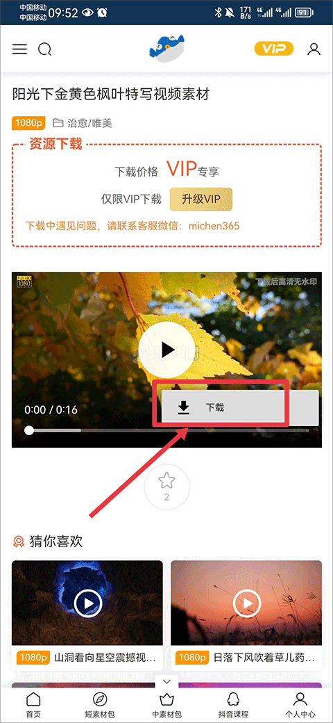 3、用户根据自己的喜好选择素材后,就可以点击进入购买界面,若用户为vip会员则可直接点击下载按键进行下载