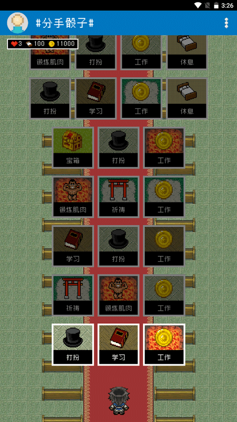 2、当快要到100天纪念日前,你需要选择去做上方其中一件事。比如学习的话,你就需要去图书馆,通过掷骰子的方式提升自己的等级,学习就是提升智慧,骰子数量越高,你的智慧等级就会越高。