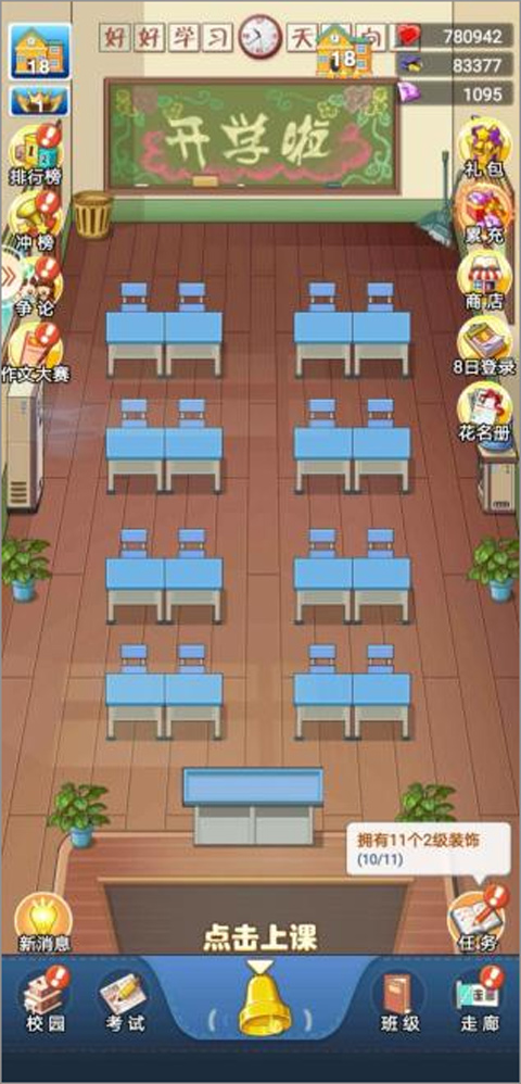 1、上课玩法介绍:老师上课时,会有部分学生举手踊跃回答问题,可选择对应学生让其进行问题解答。学生每回答完一次问题,老师的经验就增加一点,而对应的能量就减少一点,如果能量耗尽则不能进行授课。