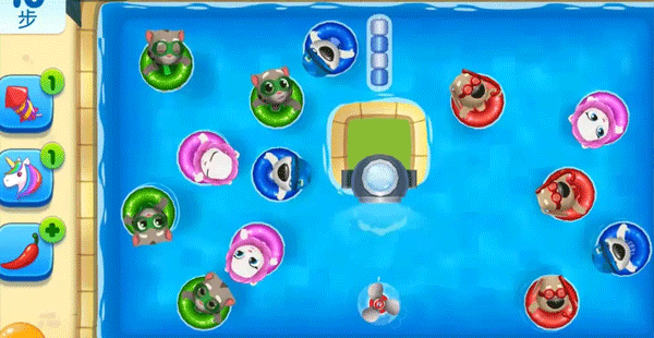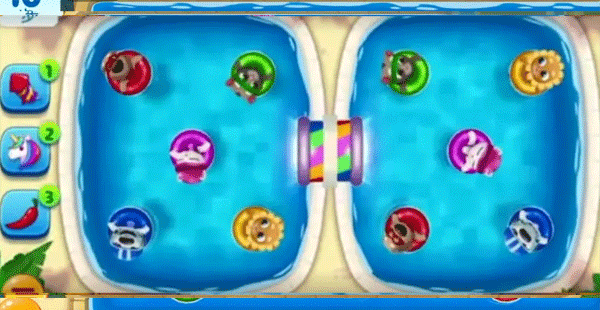 游戏中的道具特别强大,比如火箭能一次性清空同色泳圈,独角兽能让所有泳圈变白,辣椒则能在短时间内快速清除泳池角色。还有豆子、风扇、冰块等元素,让关卡充满挑战和惊喜。