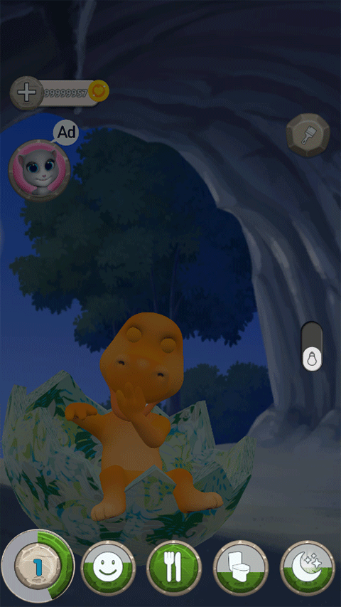 会说话的恐龙最新版是一款非常有趣好玩的休闲益智手游,以宠物养成为主要玩法,主角是一只可爱的恐龙,在游戏中玩家可以通过触碰恐龙来让它做出有趣的反应,对它进行抚摸、手指戳它或者拳轻打它都可以,恐龙还会发出各种有趣的声音,让你笑爆肚子,还可以喂它吃东西、给它换造型、换上好看的衣服、给它洗澡、叫它睡觉等等,各种互动将给你带来意想不到的乐趣。
