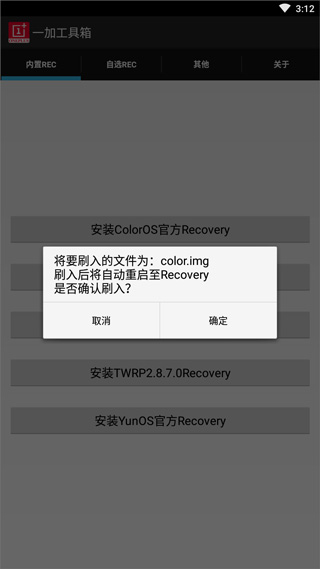 2、点击内置Rec,选择要刷入的一加Recovery,点击确认;