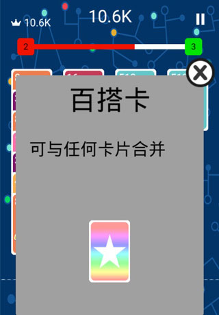期间还有不用类型的卡片会在游戏中产生,如百搭卡,可与任何卡片合并。