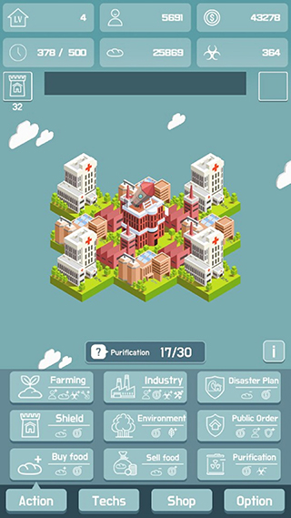 游戏操作看了教程后应该都会玩,这里要说的是防护膜,对抗灾难时将防护膜使用加到最大,比如灾难是需要7防护膜,你只用了1个,那和就会受灾6天;如果用了7个就会免疫。