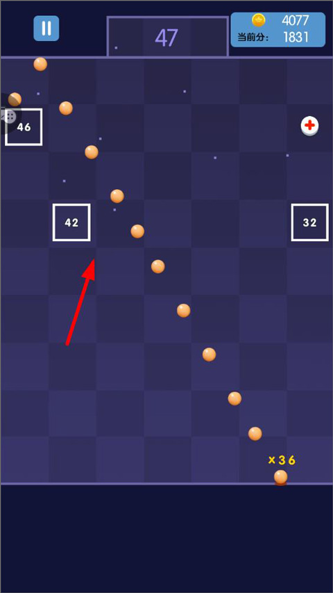 6、点击进入BB弹玩法,玩家需要控制地面的小球,弹起来打击到上面的图形,击落一个图形可获得奖励和积分。