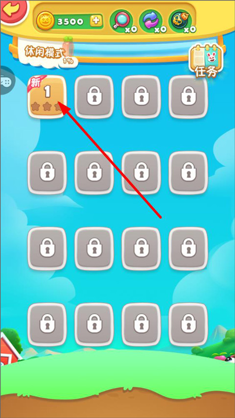 3、进入游戏后有很多关卡,从第一关开启,完成任务即可解锁下一关;