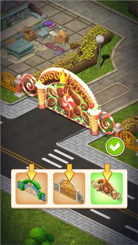 3、来到糖果庄园,看到破旧不堪的大门,玩家首先要更换新的大门;