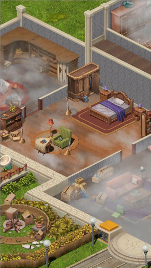 4、大门换好之后进入庄园里,房子太久没打扫很脏,玩家要和玛丽一起从卧室开始打扫;