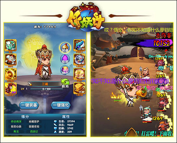 我最喜欢的是游戏的无厘头剧情和各种爆笑人设,比如性感观音、酷炫玉帝这些颠覆传统的角色设计真的太有趣了。战斗中还能触发合体技能,特别是三藏和猪八戒的“大师兄来了”合体技,简直是经典中的经典。