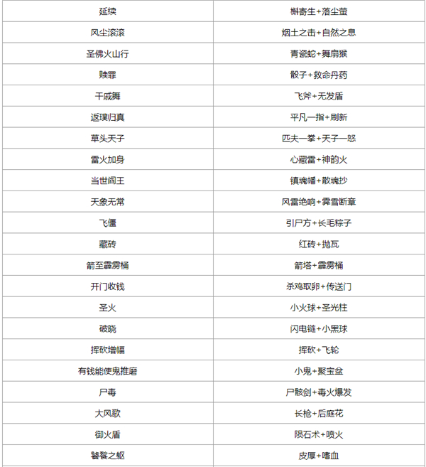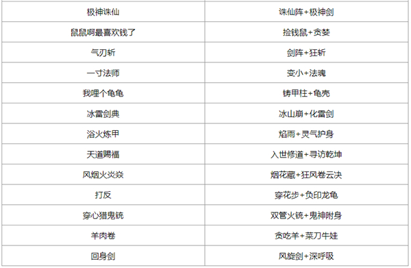 上百种技能搭配