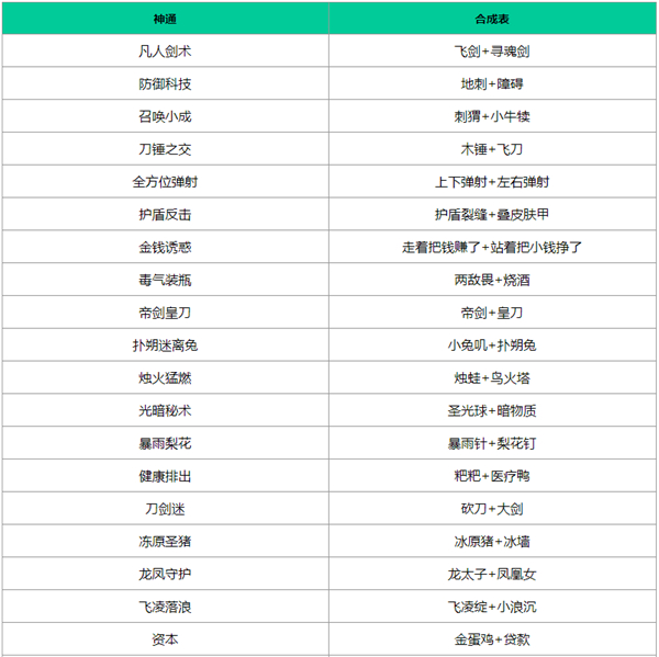 技能两两组合创造不同的神通