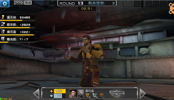 首先要说明一点就是这个地图不是玩家和玩家对抗的地方,而是和其他玩家一起对抗生化僵尸的。玩法有点类似守塔游戏,就是生化僵尸会从几个固定的点一堆堆的刷新出来,然后向玩家发起进攻。因此玩这个地图就算用AK47也不要选择狙击枪和散弹枪,因为这些枪弹量小,攻击速度也比较慢。要选择子弹多射速快的,如MG4,加特林机枪,RPD。