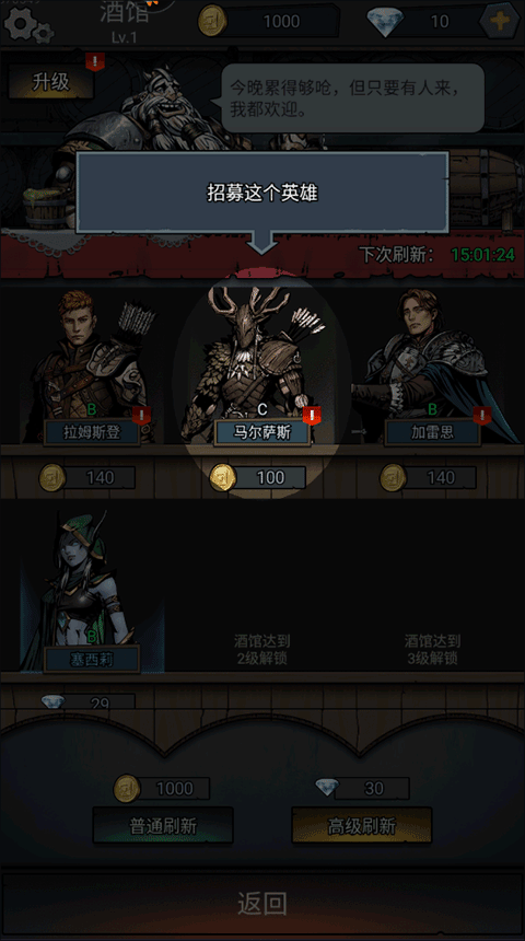 4、接着,在酒馆中招募英雄,点击这位英雄;
