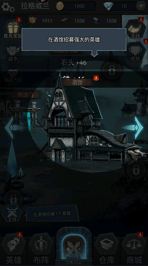 2、首先进入酒馆,在酒馆中找到并点击“升级”按钮选项;