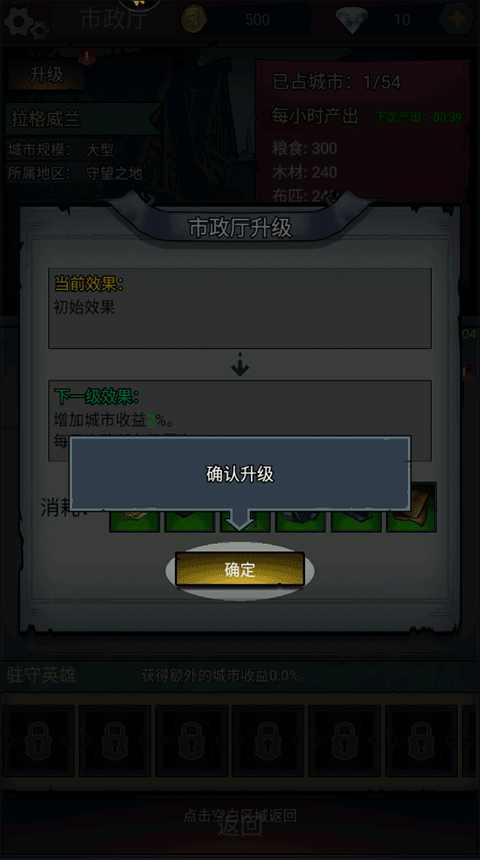 3、在酒馆升级确定界面找到并点击“确定”按钮选项;