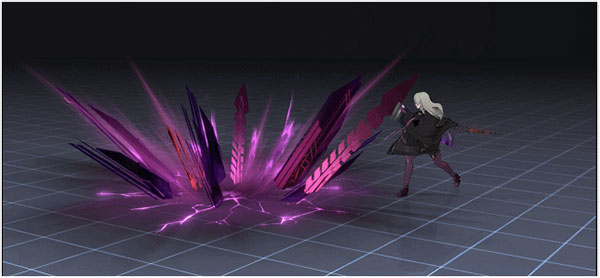 向前起跳并轰击地面,可以使小范围内的敌人浮空。攻击前摇稍微有点大,收招时间也略长,实用价值存疑,可以考虑作为起手式,对付比较笨拙的敌人。