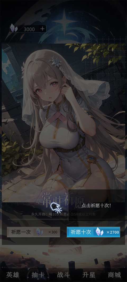 游戏一开始送了3000钻石,直接让你十连抽的感觉不要太爽!虽然界面简单了些,但操作很流畅,点起来还挺有手感的。抽到SSR的那种快乐,真的能让我暂时忘记自己是个月卡党。