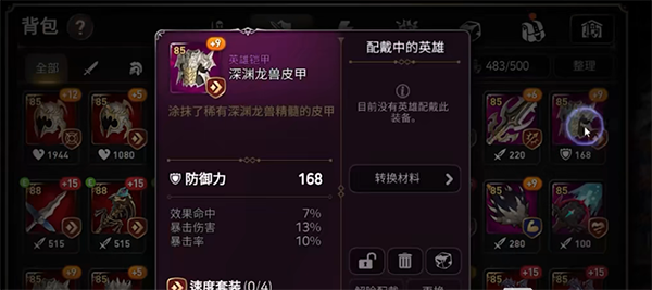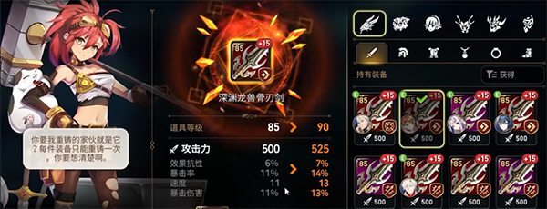 在决定了装备之后就要开始看副属性了,红装允许有一个固定值,紫装最好不要有固定值。比如一个紫色的装备,副属性为暴击、攻击、暴击伤害,这些就非常的不错。如果是效果命中、固定生命值这种就没什么用了。选择好副属性之后还要看副属性的值,要选择综合属性在波动范围中间以上的,比如那些明显低于平均值的2速度4攻击这些也是不考虑的。