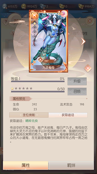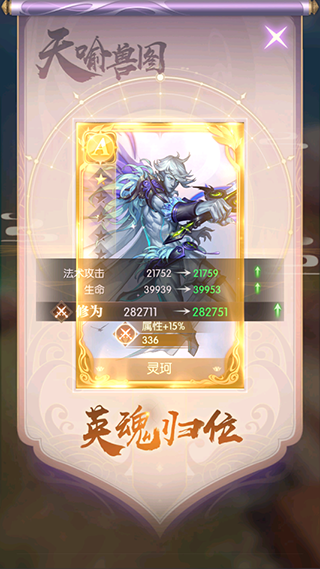 英魂属性:召唤英魂以增加英魂所赋予的属性,随着英魂等级星级提升,该部分属性也会相应增加。