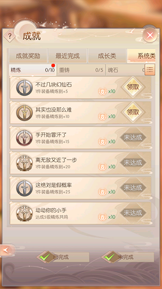 重铸:累积重铸装备到一定次数,可以获得成就点和银币、称号。