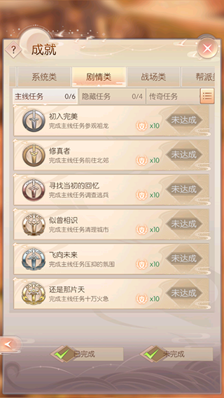 主线任务:完成指定的主线任务,可以获得成就点和银币。