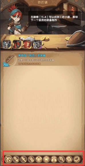 剧情副本通关7-2后开放铁匠铺,小伙伴可在铁匠铺中打造不同类型的SR装备,但是打造装备也是需要材料的;
