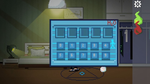 这时候会让我们输入密码,在密码器右上角有一个H2O的标志,我们刚刚说过的人体元素结构比例,H=10%、O=65%,所以按照顺序号就应该是10265,在密码器中输入10265即可。