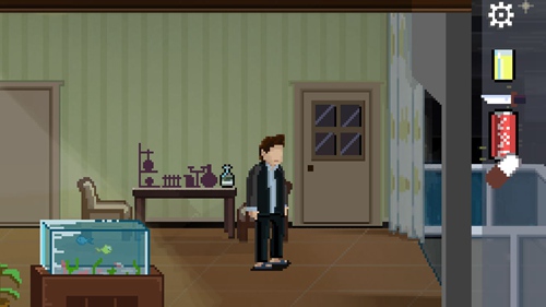 来到客厅,点击沙发旁边的柜子,可以敲碎柜子门,获得里面的匕首,同时门口鞋柜也可以敲碎,获得里面的橙汁。