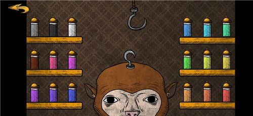 点击右上角的那瓶液体,往猴子头上浇就会长出钩子。点击天花板上的钩子就可以得到猴脑。(部分画面很恶心,就没放出来。)