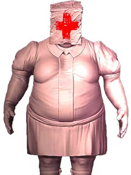怪物技能:隐身(收割者护士会切换武器),远程扔药囊(拥有眩晕效果)